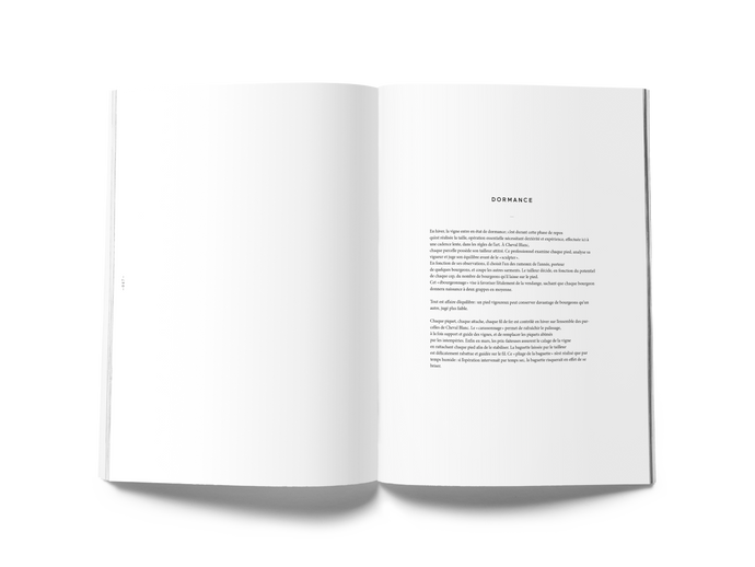 Le vin se révèle objet de passion et de dévouement, de temps et d'attention portée aux détails. Château Cheval Blanc est un joyau de notre patrimoine culturel et humain, et le savoir-faire qui l'accompagne se nourrit de tradition, de précision et d'innovation. En ce sens, l'Art et l'Artisanat ont la même vocation. Tous deux partagent la quête de la rareté et de l'excellence. Complémentaires, les supports choisis (un film et un livre) veulent mettre en images la parfaite symbiose entre une nature providentielle et l'Homme qui la sublime au fil de l'année. Mais, plus que tout, c'est une vision graphique qui veut dépasser les frontières entre l'Artisanat et l'Art.